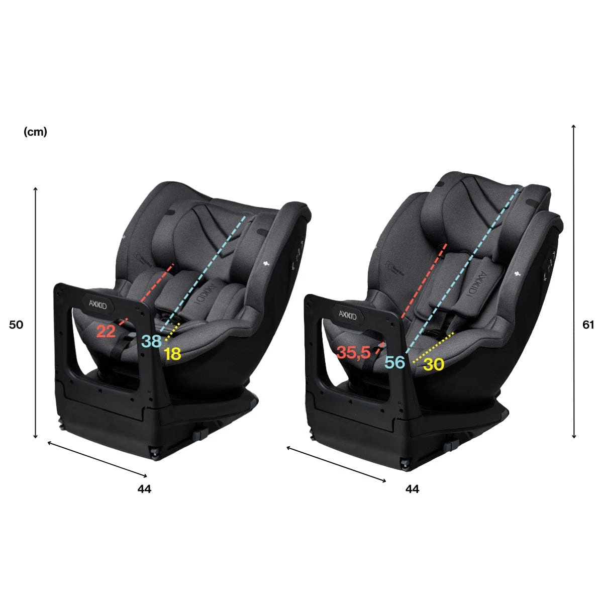 - Rear-Facing: Suitable from birth to approx. 4 years (40-105 cm, up to 18 kg).