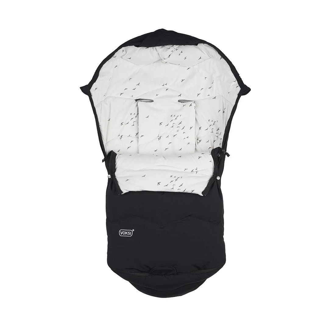 The Voksi® Explorer Black Flying Footmuff is a beautifully crafted, all-season essential designed to keep your little one cosy, warm, and protected during autumn and winter adventures in their pushchair and car seat.