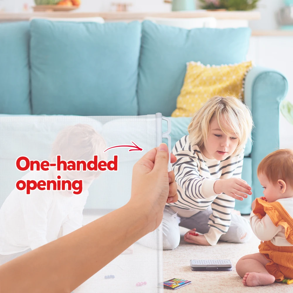 This retractable gate is designed to fit wide openings, extending up to 140cm, perfect for doorways, hallways, and stairways. However, if used as a baby gate, the recommended maximum width is 110cm, ensuring optimum safety. When not in use, the gate rolls neatly into its casing, remaining unobtrusive and allowing for clear passage around your home.