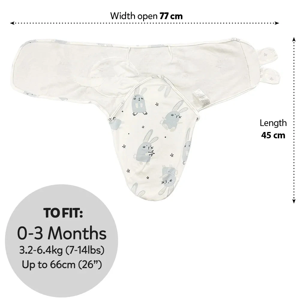 The Callowesse Newborn Baby Swaddle in the charming “Bunny Buddies” design is the perfect solution for ensuring your baby has a safe and restful sleep. Tailored specifically for newborns aged 0-3 months, this swaddle is suitable for babies weighing between 3.2-6.4kg (7-14lbs) and up to 66cm (26″) in length.