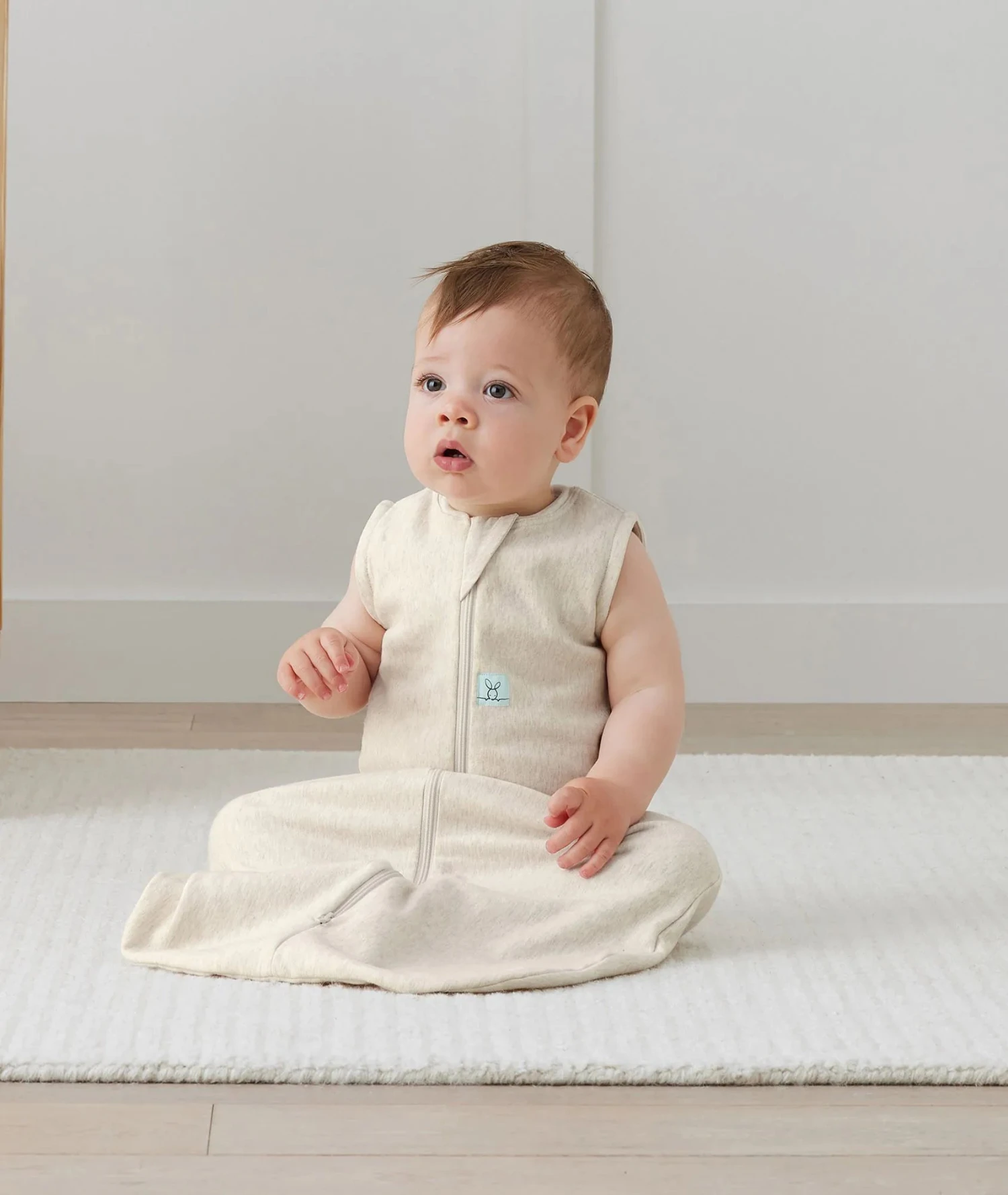 The ergoPouch Jersey Sleeping Bag, Oatmeal is an organic baby and toddler sleeping bag designed specifically for arms-out sleepers, typically from around 3 months of age.