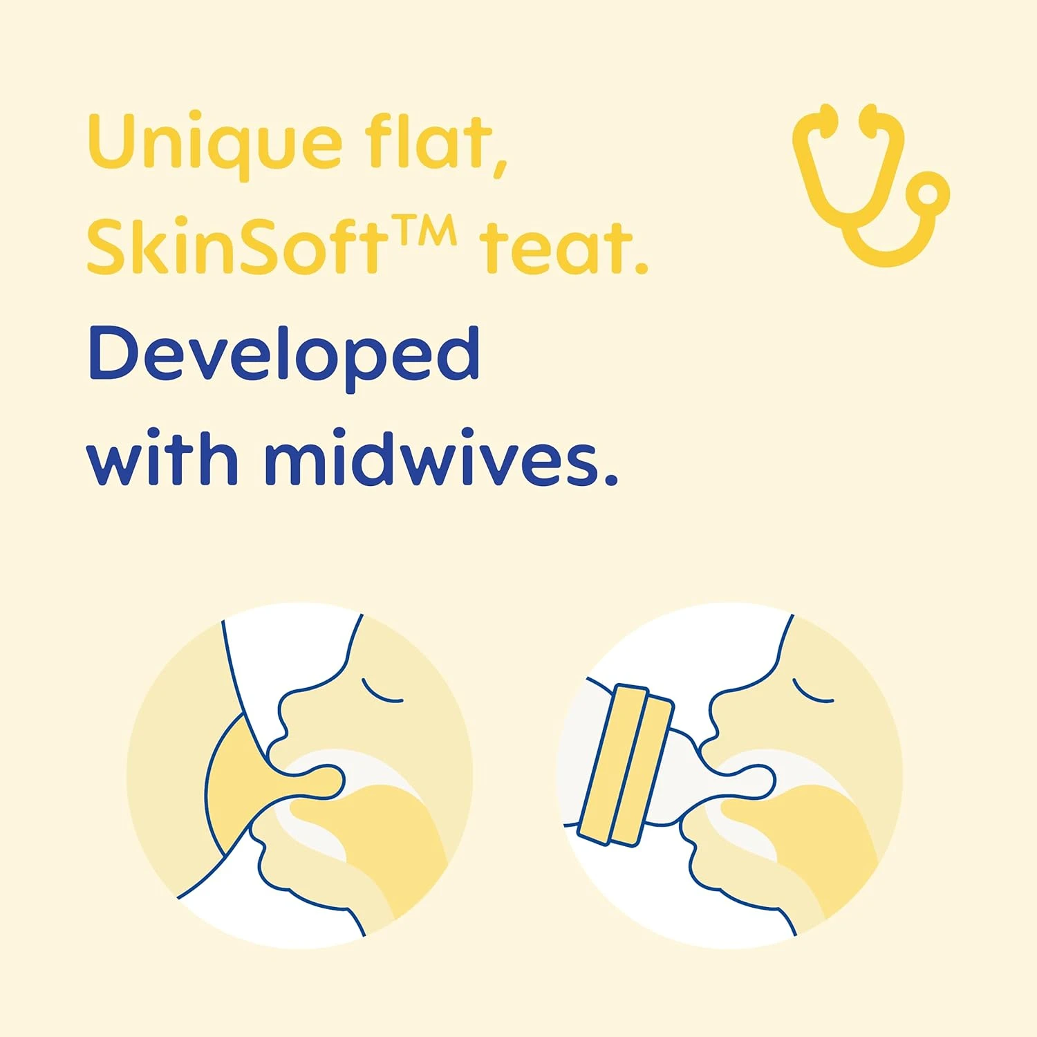 - SkinSoft™ Silicone: The teats are made of ultra-soft silicone that mimics the natural feel of a mother’s skin, increasing the likelihood of acceptance by your baby.