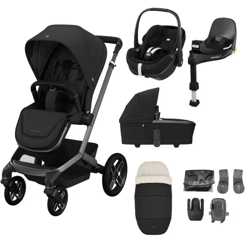 The Maxi-Cosi Fame Premium 9 Piece Travel System, Twillic Black is set to become a future design icon with its sleek, seamless look and pioneering features. Combining modern aesthetics with timeless functionality, it is meticulously crafted to offer luxury and comfort for both baby and parent. With premium details throughout, the Fame stroller is built to last, allowing today’s families to navigate the future with ease and style.