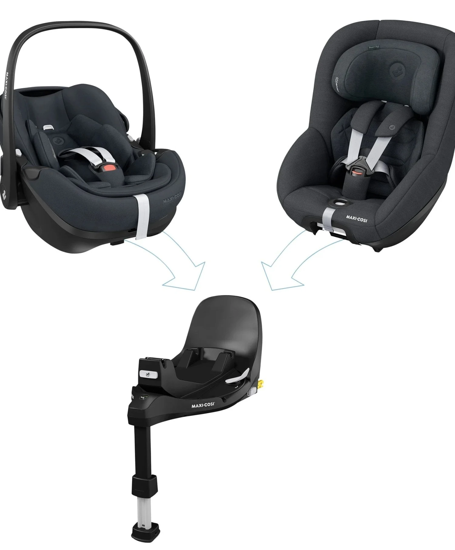 - 360° Rotational System: Effortlessly rotate the Pebble 360 Pro and Pearl 360 Pro car seats with just one hand, regardless of the recline position. This feature ensures seamless transitions and optimal comfort for your child.