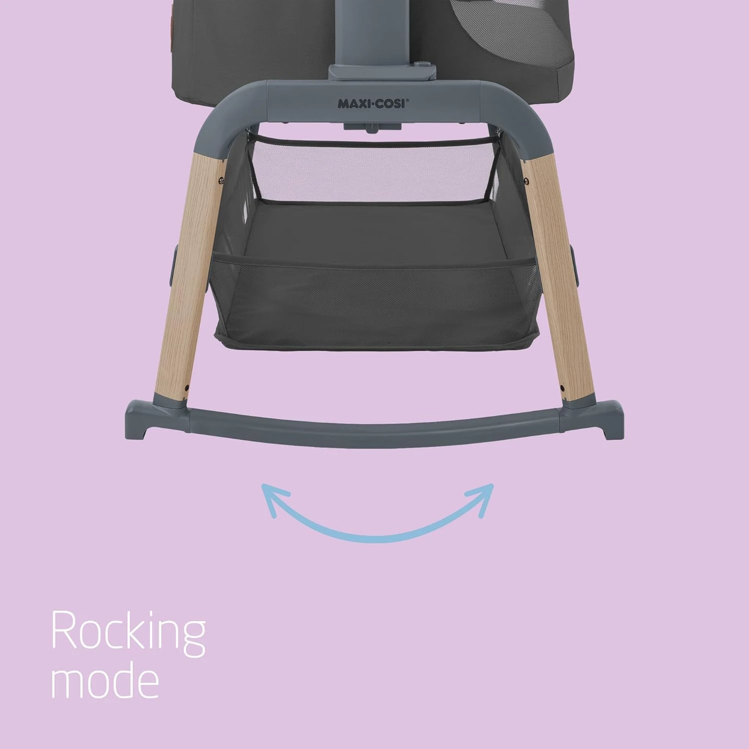 Design and Aesthetics With its stylish wood-effect accents and clean, curved lines, the Maxi-Cosi Iora Air blends seamlessly into any modern home interior. The Beyond Graphite colourway adds a contemporary touch, making this co-sleeper both functional and visually appealing.