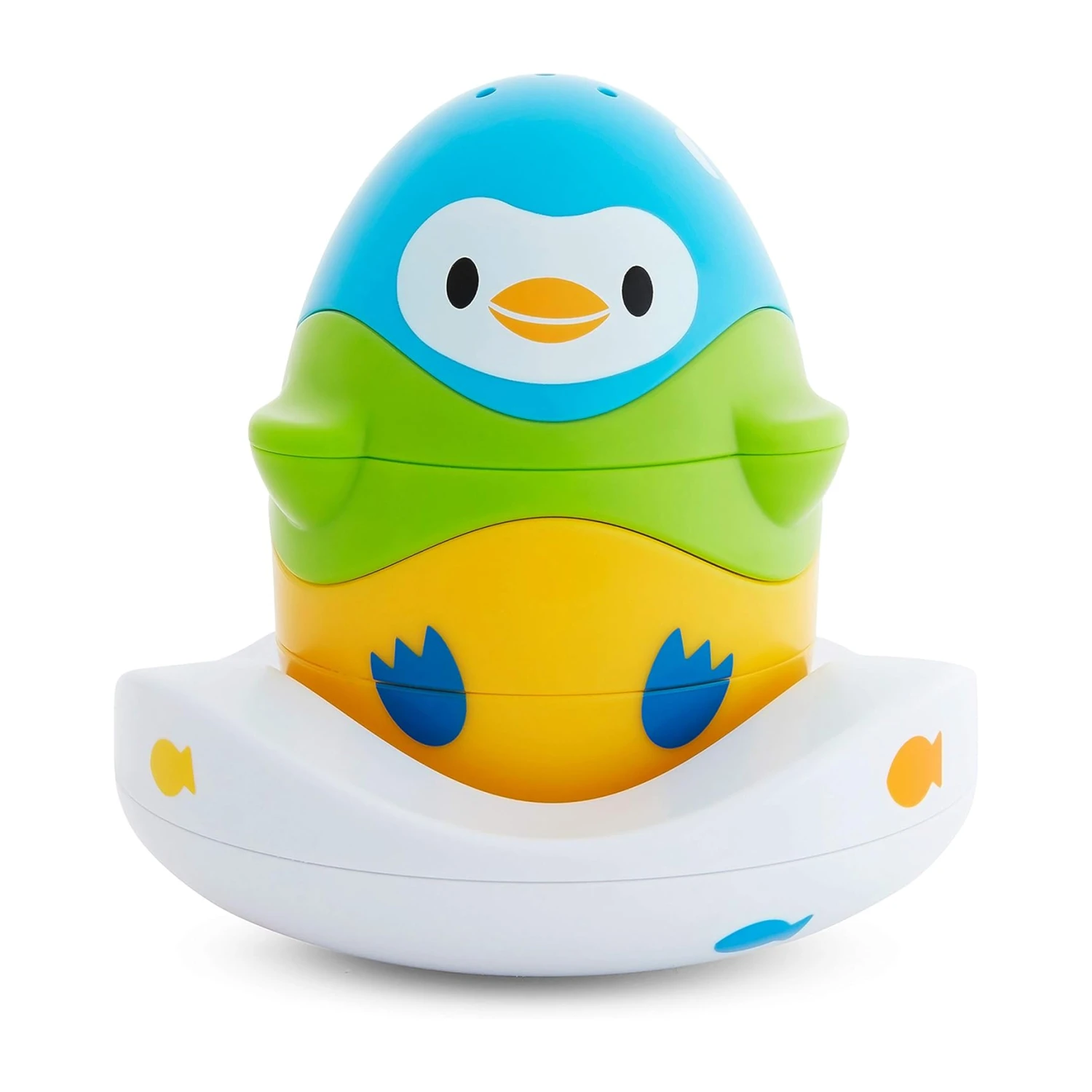 The Munchkin Stack N’ Match Penguin Bath Toy brings imaginative play to bath time, offering endless fun for your little one. With this toy, your child can mix and match three different animal-themed characters: a playful penguin, a splashy shark, and a bouncing bear. The interchangeable pieces allow your child to create funny, mixed-up animals, encouraging creativity and imaginative play.