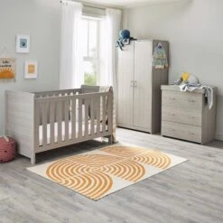 Babymore Babymore Caro 3 Piece Nursery Furniture Set With Cot Bed, Dresser And Wardrobe – White Wash