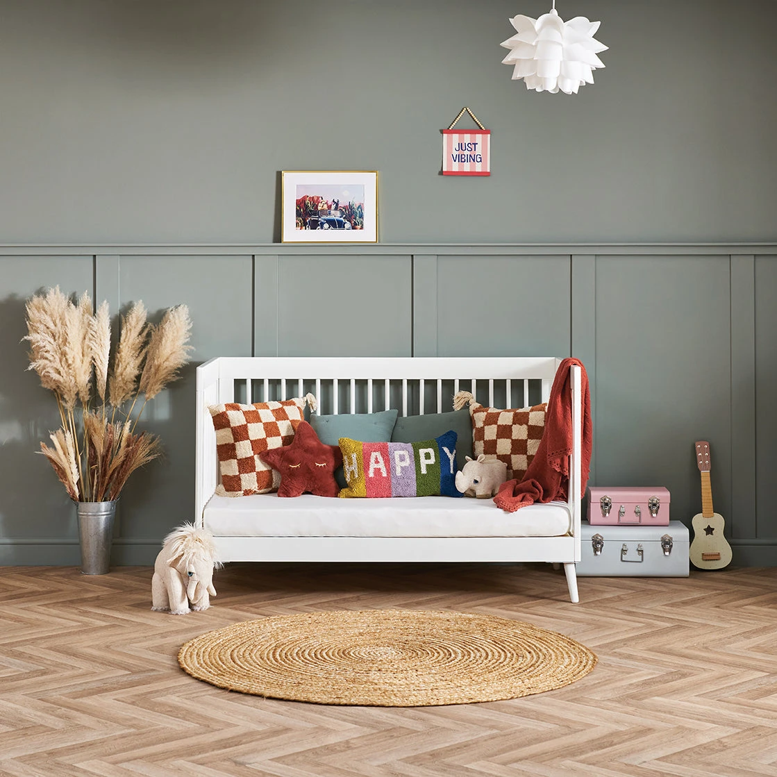 When it’s time for the toddler transition, the Maya Cot Bed includes a dual-ended safety rail that offers stability and reassurance for a child adjusting to a new sleeping environment. Once the child is comfortable and ready for full independence, the safety rail can be easily removed, transforming the cot into a stylish, low-profile toddler bed.