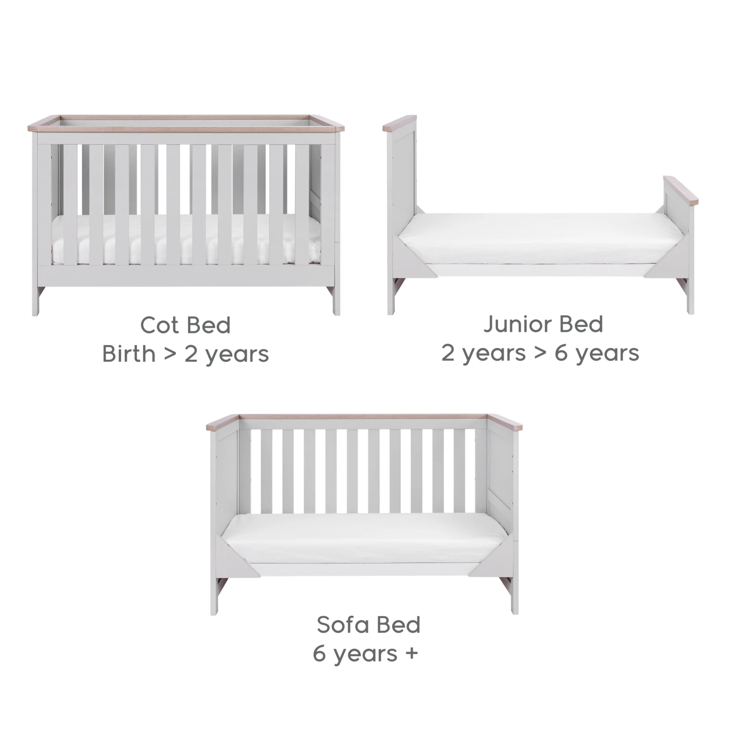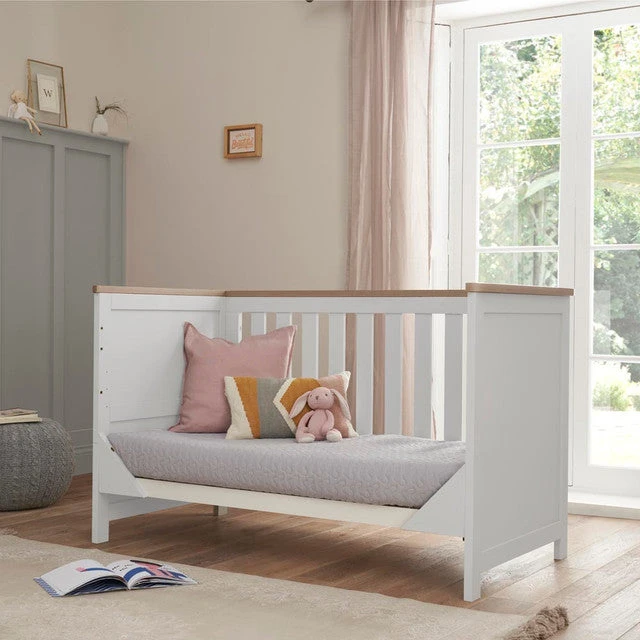The Verona cot bed is a standout example of shaker-inspired design, combining simplicity and practicality with timeless appeal. Its clean, classic lines are enhanced by a durable soft-touch finish, ensuring it blends seamlessly into any nursery style. Designed to grow with your child, the cot bed features three adjustable mattress heights, making it easy to reach your newborn while providing safety as they develop. As your little one transitions from baby to toddler, the cot converts effortlessly into a junior bed and later into a daybed or sofa, offering exceptional value and versatility.